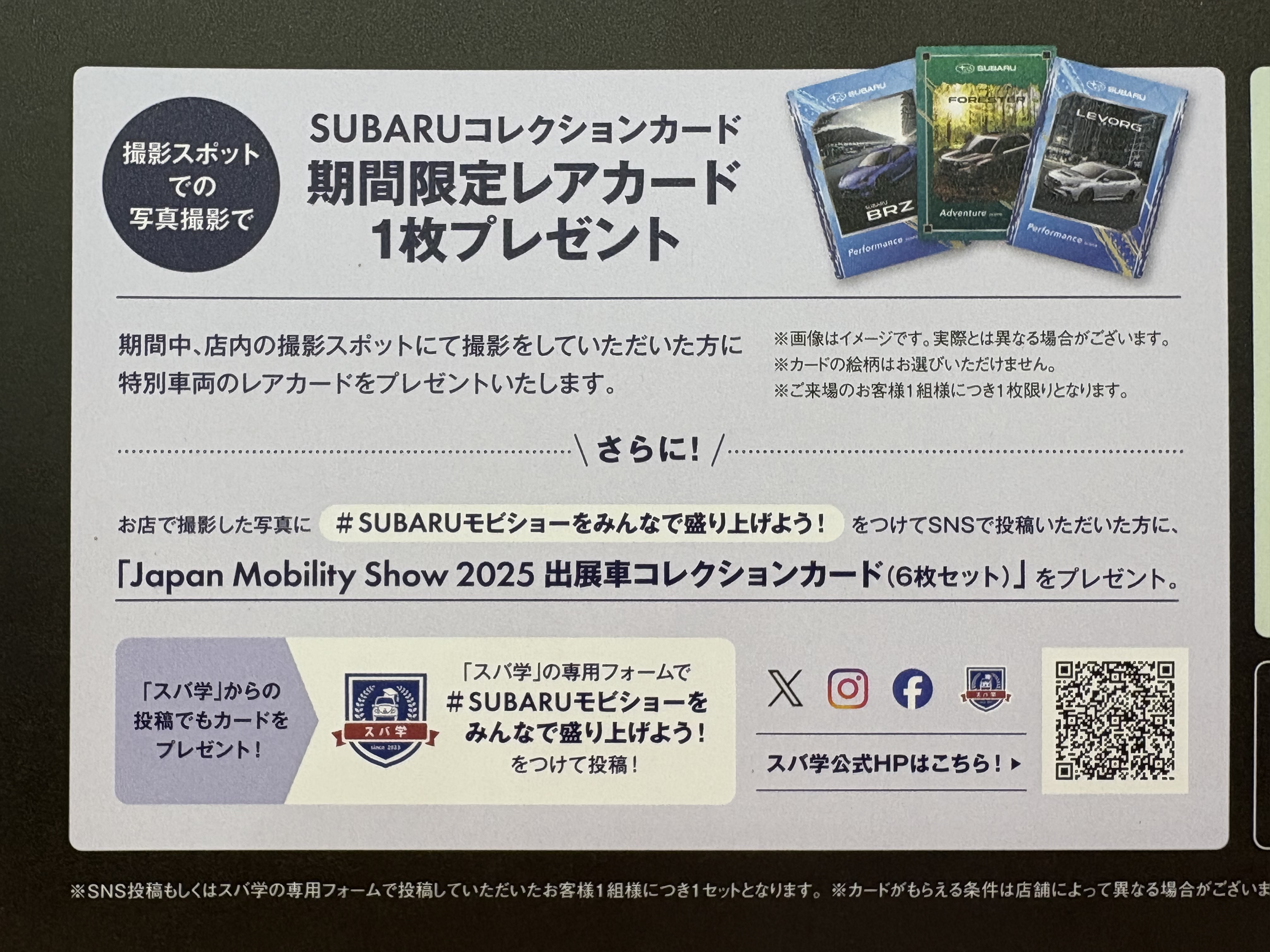 ・スバルオリジナル カードプレゼント 11/16(日)まで