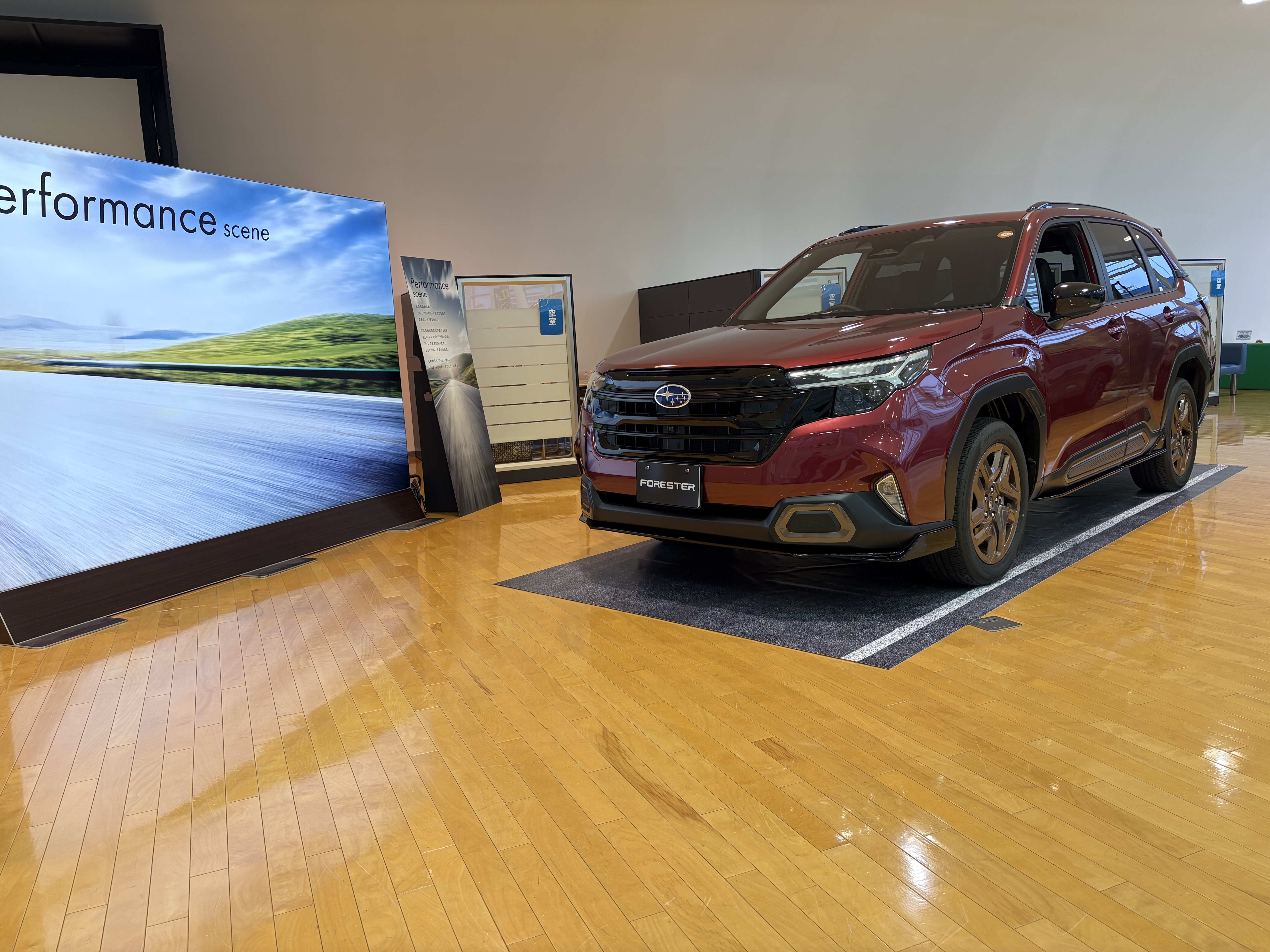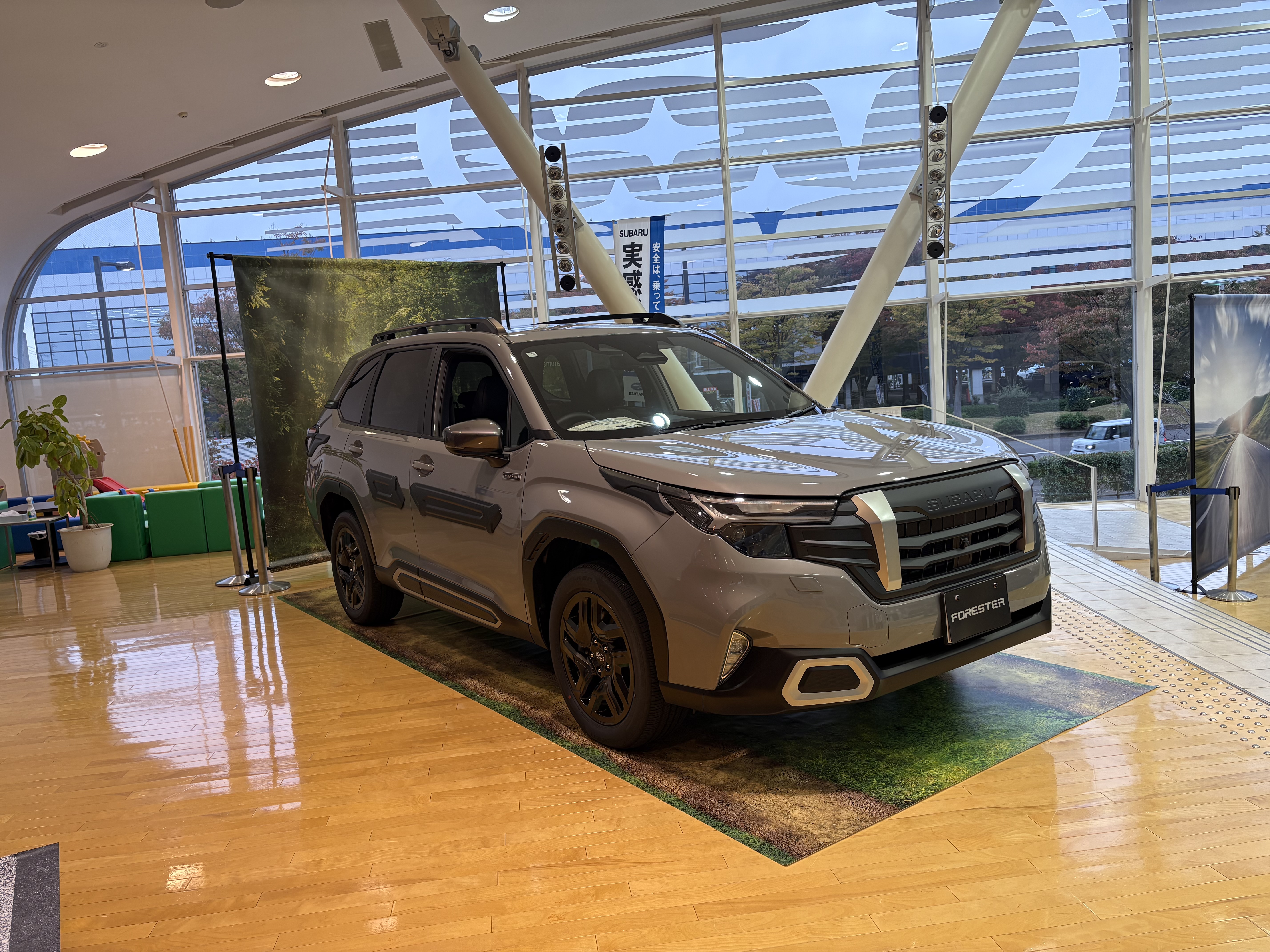 現在、ジャスティ、インプレッサ、レヴォーグ、BRZ、フォレスターがショールームには展示中です。
