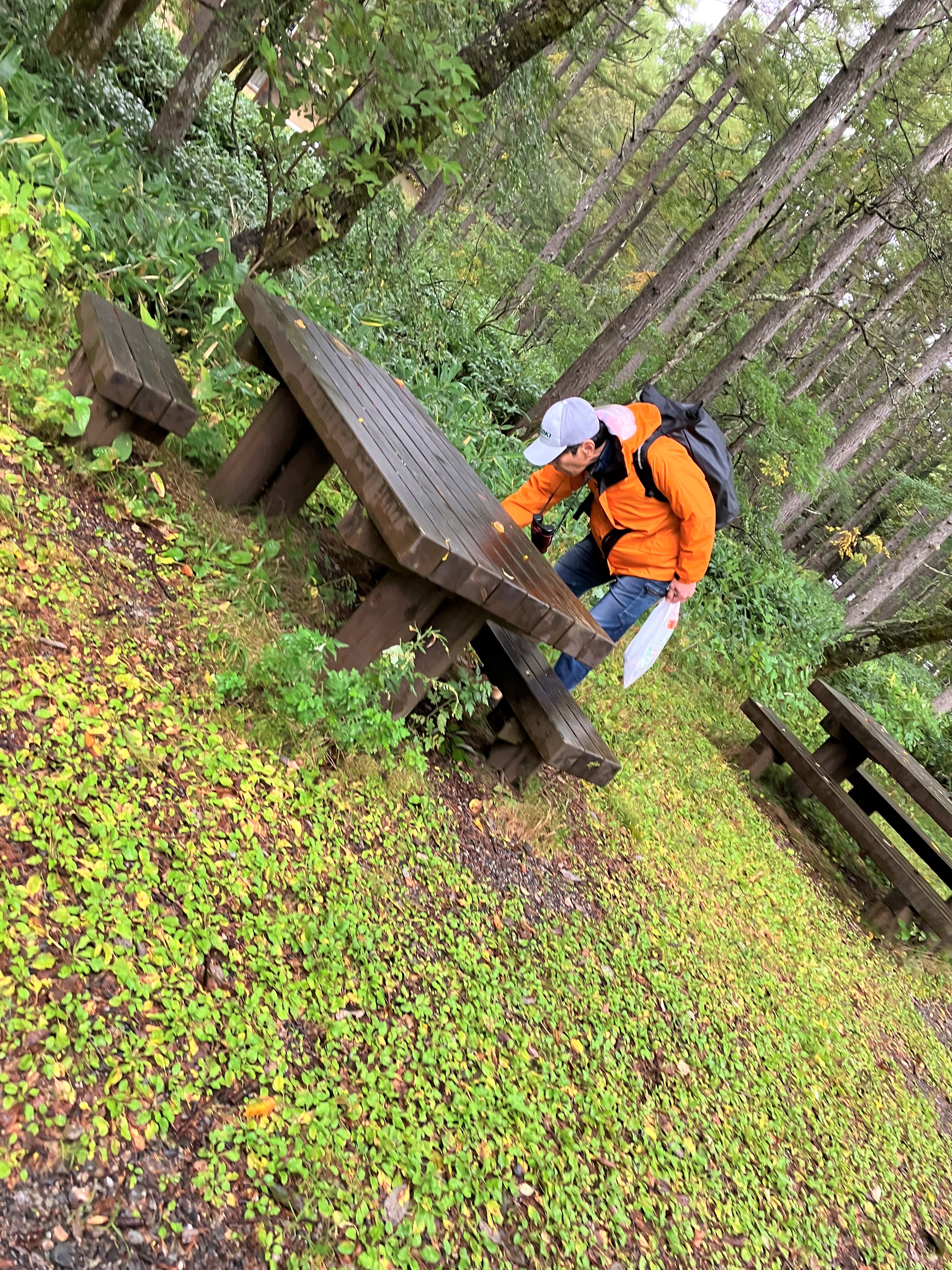 午後の散策は、散策を兼ねたゴミ拾い活動を行いました。目立つゴミは少なかったものの、やぶの中や休憩スペースの裏側など、