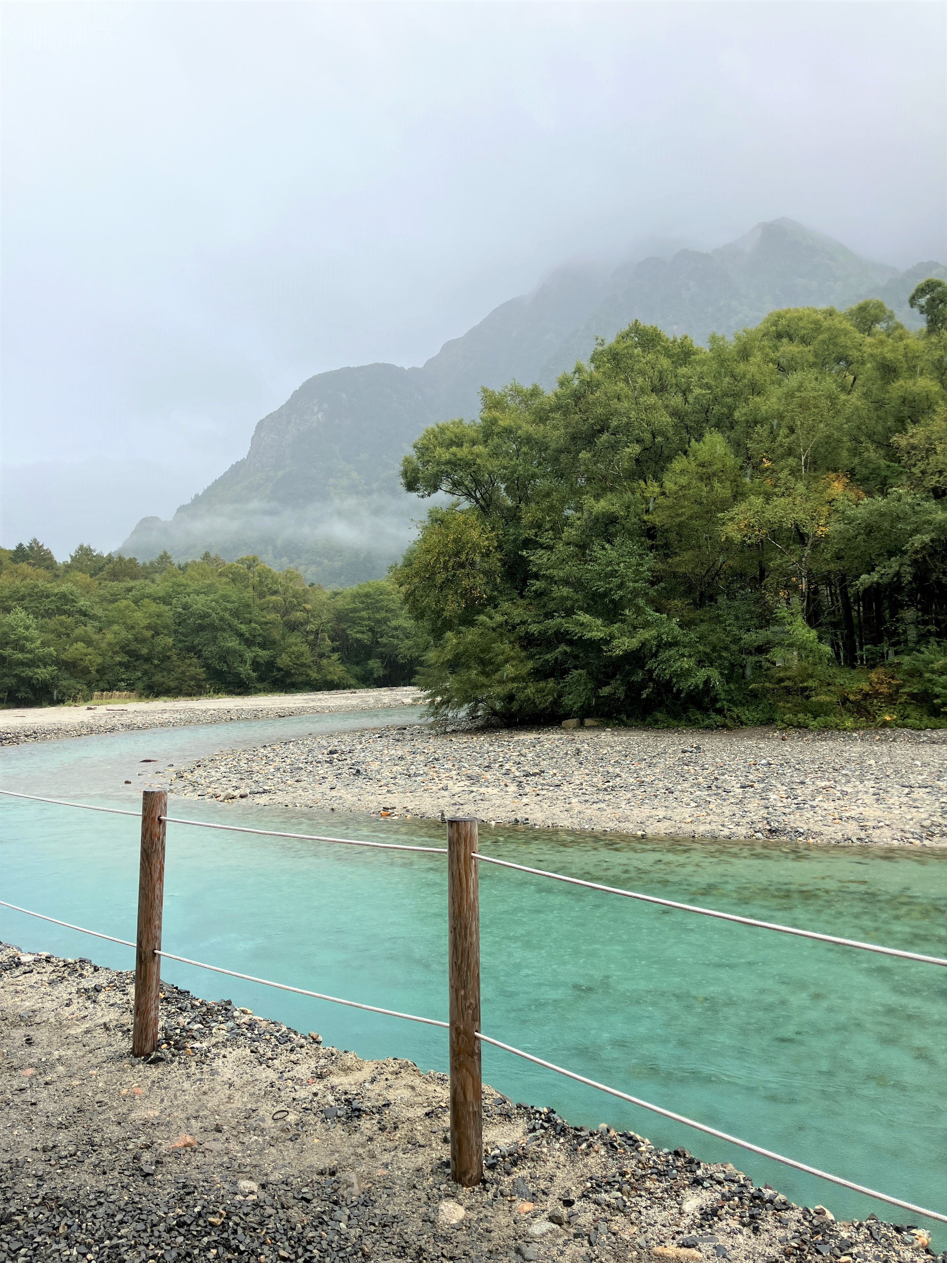 雲に包まれた奥穂高岳の輪郭、澄み切った清流の静けさ、雨音とともに感じる森の呼吸。晴れた日とはまったく異なる表情の中に、自然のいのちのたくましさと静けさを深く感じ取ることができました。