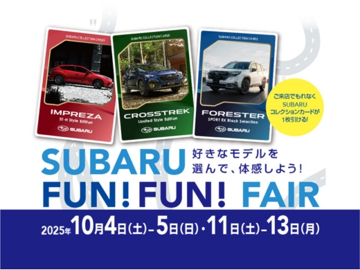 2025.10.02北陸スバル試乗や査定でプレゼントもらえる!SUBARU FUN! FUN! FAIR