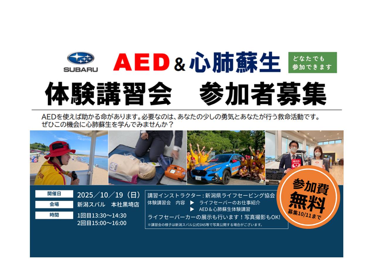 一つのいのちプロジェクト2025.09.29北陸スバル新潟スバル:AED&心肺蘇生 体験講習会参加者募集